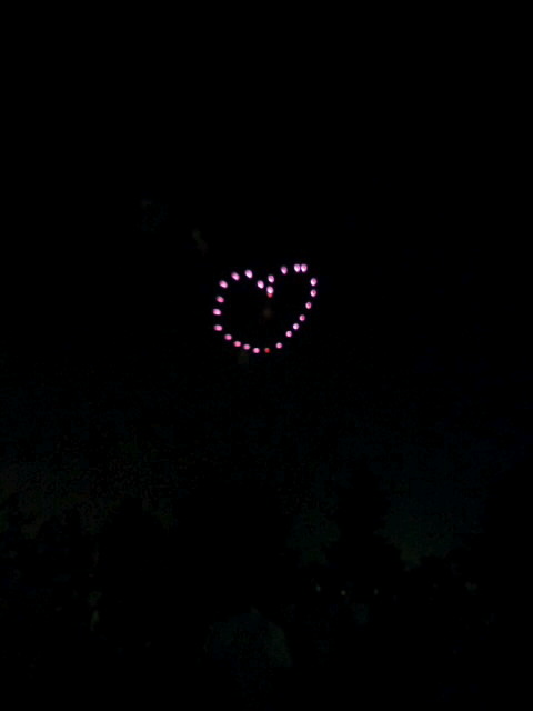 花火は、なんというか……まあ見ないと伝わらないでしょう。とりあえずいえることは、ハートマークの花火をばっちり撮れたってことくらいですな。